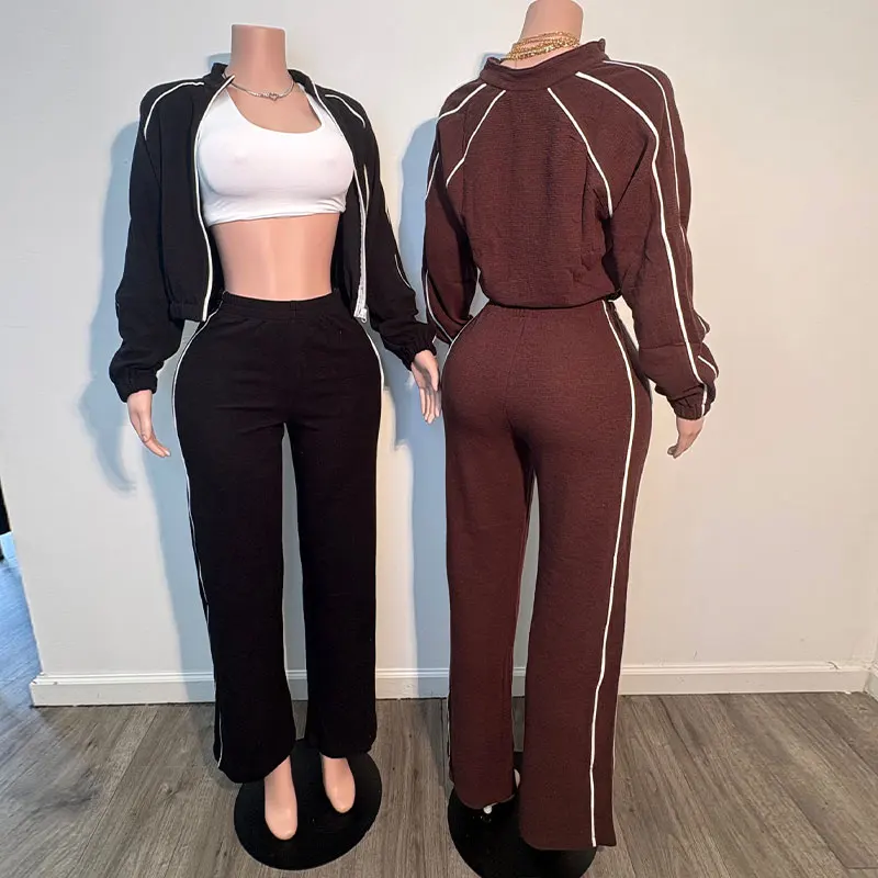 Huili Solid Color Cotton No Hood 2 Piece Pants & Zip up Stand Collar Crop Top Sports Outfits Activewear Women's Loungewear Sets